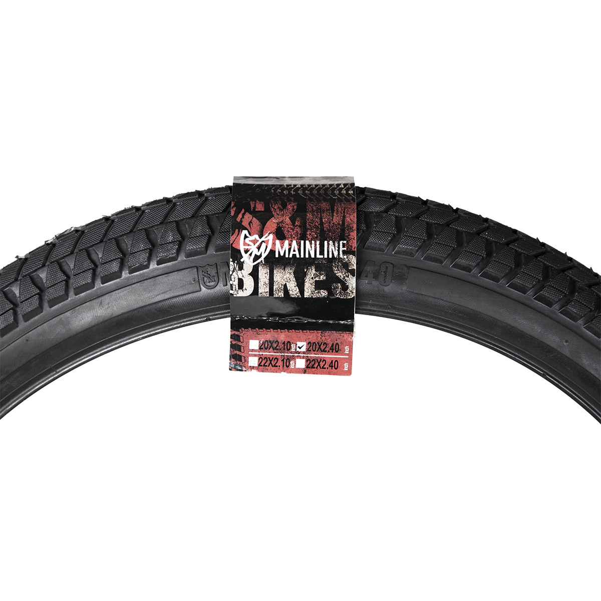 The 2.10″ (2.2″ inflated) has a micro knurled surface on a directional tread designed to go on the rear. It also features a center tread with a V-notched edge for accelerating and a flat edge for braking. The 2.40″ size is designed specifically as a front tire. Additional angular raised center tread sections keep the larger, front specific Mainline on the blue groove in turns! Available in 20″ and 22″ sizes.