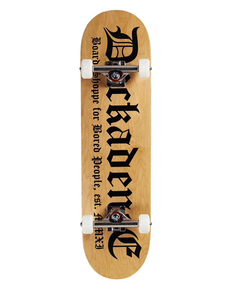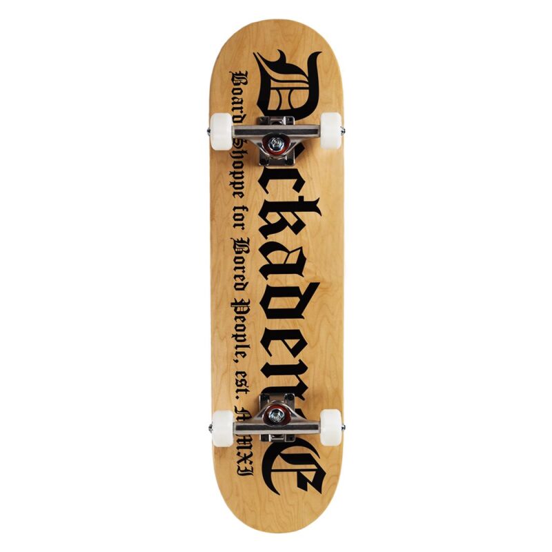 Ready to flip the script on your skateboarding journey? The Deckadence Script Complete Skateboard is your perfect ride. Crafted from premium North American Hard Rock Maple, this professional-grade deck offers a perfect balance of strength, flexibility, and pop. The iconic Deckadence Script logo, screen-printed in classic black ink on a natural wood stain adds a touch of timeless style.